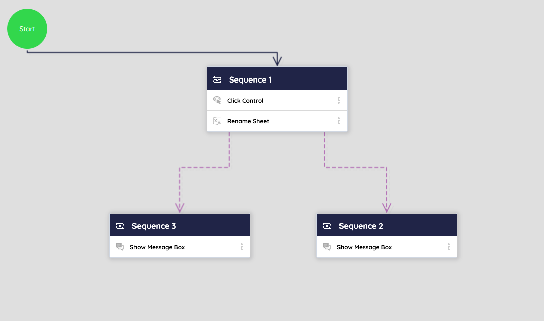 In this example, if Sequence 1 throws an error, the robot will proceed to the Sequence 3 instead of Sequence 2.